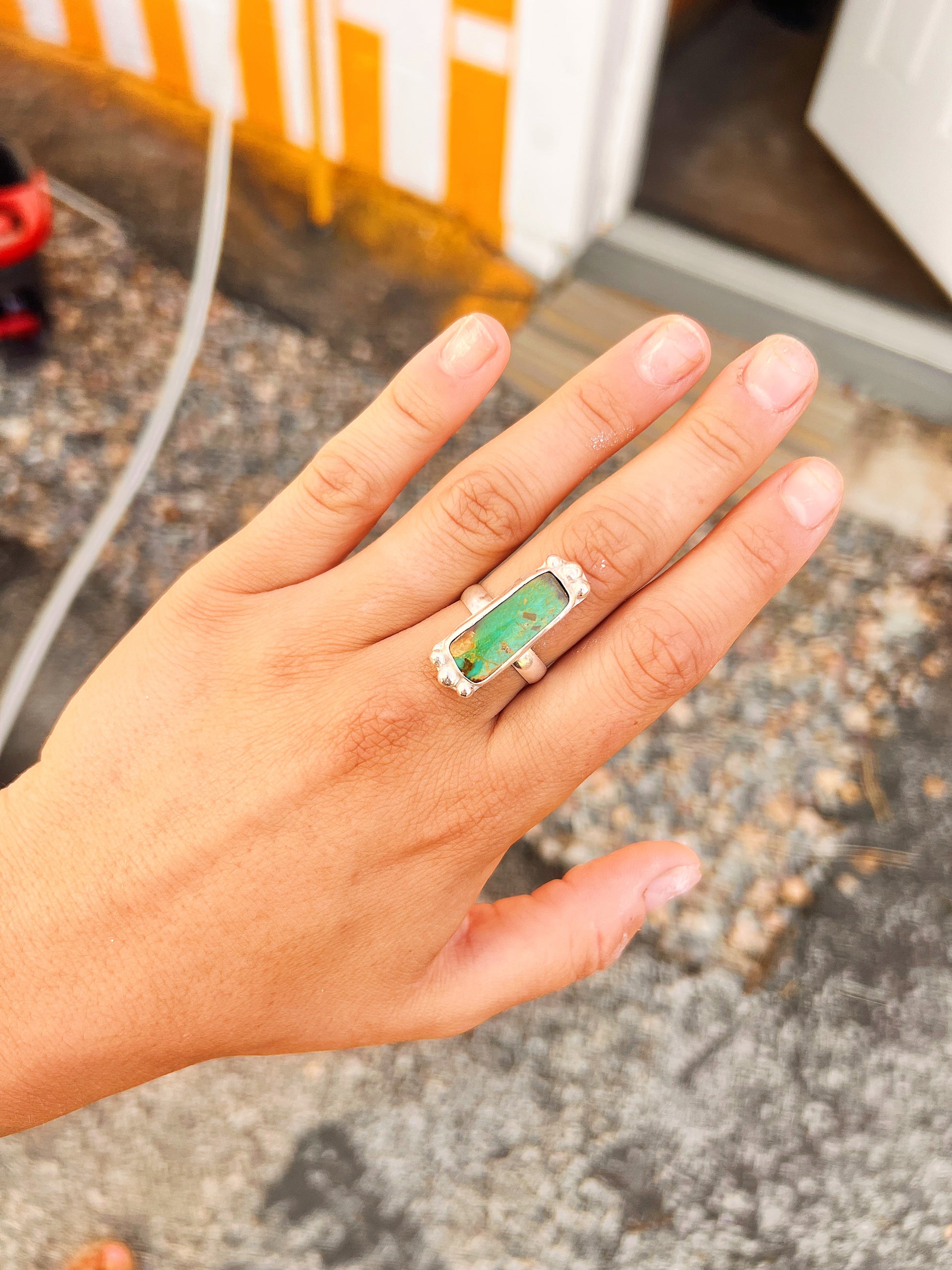 Made with high quality, Tyrone turquoise and 100% sterling silver. Size 8.5.