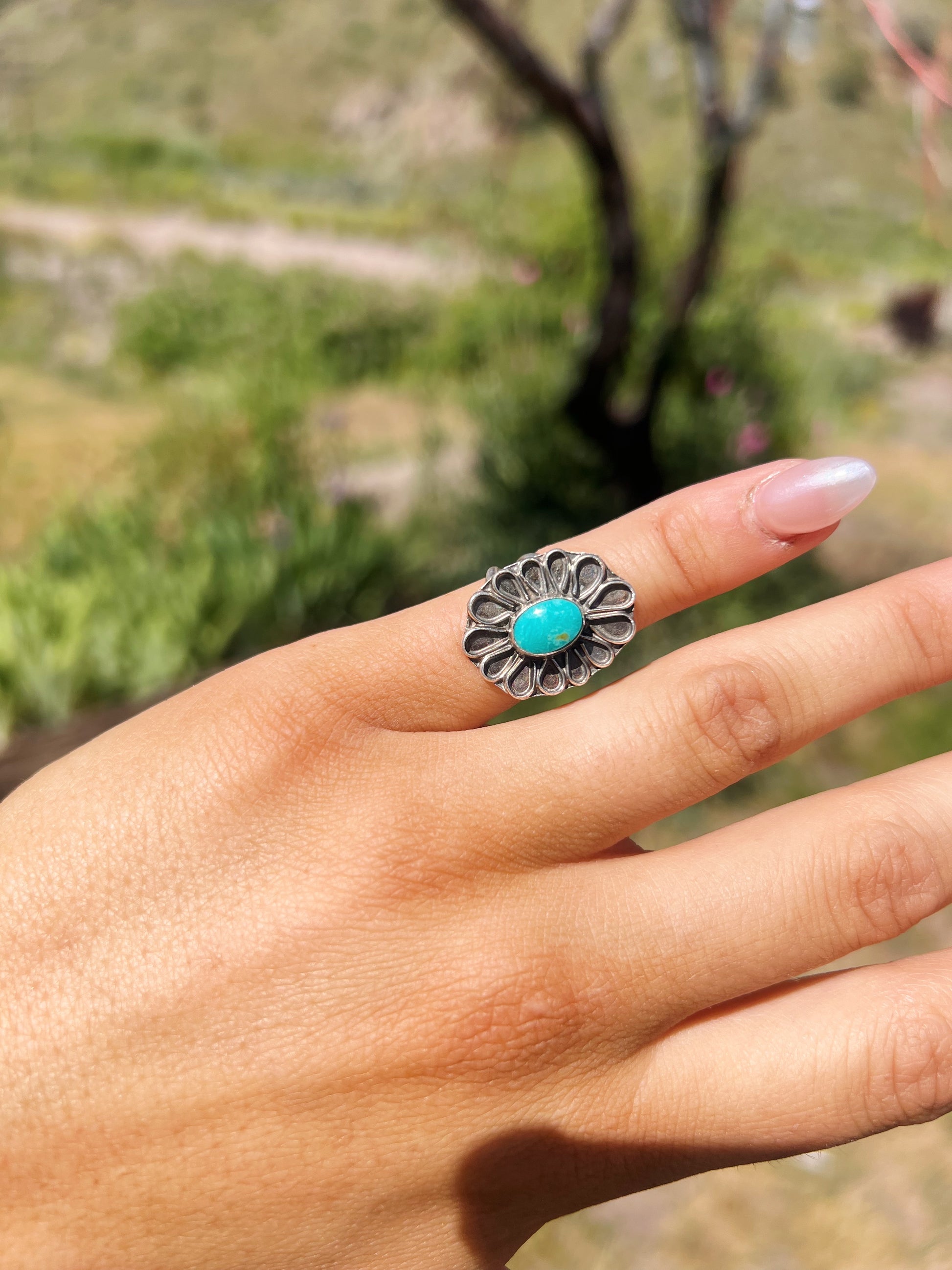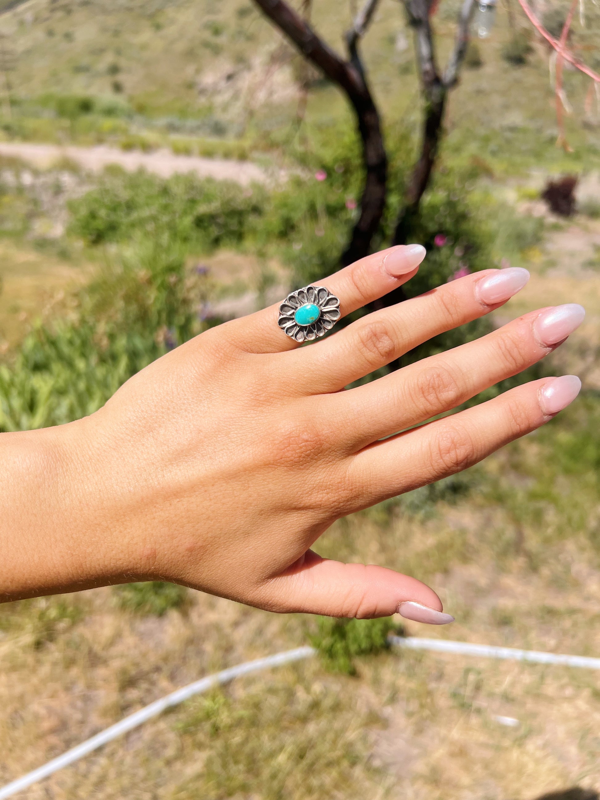 This ring is handmade with 100% sterling silver and high quality Sonoran turquoise. Size 4.5